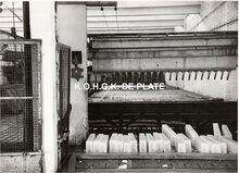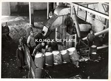Formaat : 18 x 13 cm. - Het ijs wordt op het schip gespoten