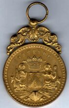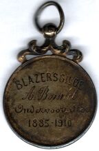 Op de keerzijde : horizontaal BLAZERSGILDE (licht gebogen) / A. BONNEL / ONDERVOORZITTER / 1885-1910