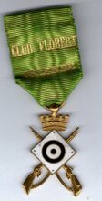 Het teken bestaat uit een gekroonde schietschijf in email met daaronder twee gekruiste geweren/