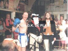 Formaat : 10 x 13 cm. - Opendeur van de sportclubs in de Koninklijke Stallingen. Links, Robert Van de Walle