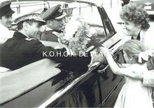 Vergroting. - Formaat 28 x 40 cm. - Hier in het gezelschap van burgemeester Adolf Van Glabbeke en zijn echtgenote.