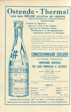 Une eau belge alcaline de régime. chloro-bicarbonatée, biboratée sodique. Concessionnaire exclusif : Ostende Thermal Compagnie Générale des Eaux Minérales et Gazeuses s.a.. Galeries Royales, Digue de Mer, Ostende
