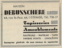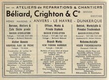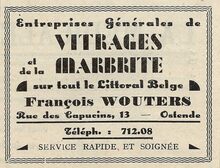 Exécuté : Palais des Thermes, Ostende. Cabines fixes Ostende-Plage. Port de Pêche, à Zeebrugge. Usine le Froid Industriel, Ostende