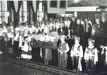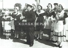 Vergroting. Formaat : 30 x 40 cm. - Het koor "Het Loze Vissertje" luistert de jaarlijkse Vissershulde op aan het Monument der Zeelieden op het Zeeheldenplein
