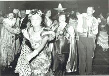 Vergroting. - Formaat : 30 x 40 cm. - De carnavalgroep "Ali Baba en de 40 rovers" op het Wapenplein. Links het hotel "Royal Nord" en ernaast reclamepaneel voor "Coca Cola".