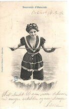 Formaat : 9 x 14 cm. - PLAGES BELGES. - Un bain. - Eerst omkleden in de badkar en dan een bad nemen in zee