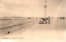 Postkaart : 9 x 14 cm. - OSTENDE - DIGUE ET PHARE. - Links het Klein Strand en Weststaketsel. Op de dijk de Eerste vuurtoren.