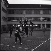 Negatief : 6 x 6 cm. - In de namiddag werd er een sportieve wedstrijd gespeeld