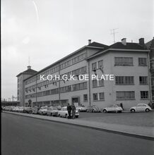 Negatief : 6 x 6 cm. - Het gedeelte van de school langs de Leopold III-laan