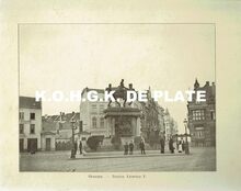 Formaat : 17 x 22,5 cm. - Het Leopold I-monument op het Leopold I-plein, met rechtdoor de Kemmelbergstraat. In de voorgrond tramsporen.