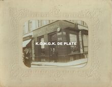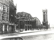 Formaat : 18 x 24 cm. - Het oud station op het Hazegras. Helemaal links CafΓ© Belge