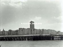 Formaat : 23 x 30 cm. - Weststaketsel met zicht op het Klein Strand en de stad, centraal in de achtergrond het Europacentrum, helemaal rechts het Kursaal