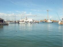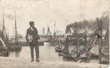 Formaat : 18 x 13,5 cm. - In de achtergrond de Visserskaai. Op de voorgrond jachten in de jachthaven in het Montgomerydok