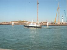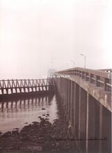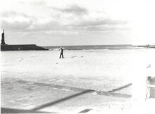 Formaat : 10 x 13,5 cm. - Rechts, de radartoren op de oosteroever. Foto genomen vanop het Weststaketsel