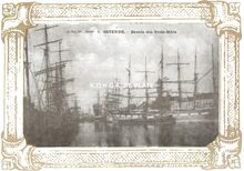 Afdruk. - Formaat : 8,5x 13,5cm. Zeilschepen in het Eerste Handelsdok
