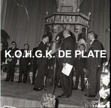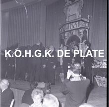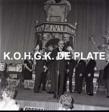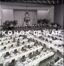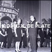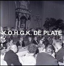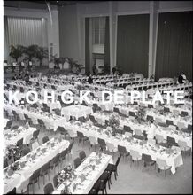 Negatief : 6 x 6 cm. - Banket met 800 aanwezigen onder het teken van de "Perron de Liège". Een huzarenstukje door de brigade van de Casino-Kursaal. Uitreiking van de prijzen aan de laureaten van de kookwedstrijd Prosper Montagné 1969. Meesterkok van België 1969 werd Roland De Reu uit Erps-Kwerps. Tweede, José Lambrechts uit Oostende. Intronisatie van ridder en officier in "l'Ordre gastronomique de Saint Fortunat"