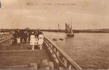 Formaat : 9 x 14 cm. - Marco Marcovici, Bruxelles. NΒ°2 c. - Ostende - L'Estacade et le Chenal. - Veel volk op het weststaketsel. Een vissersvaartuig vaart binnen. Twee jollen, meestal geroeid door gepensioneerde vissers, zorgen voor de verbinding met de oosteroever.