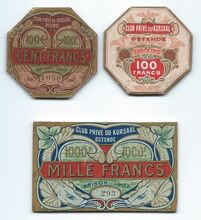 2 jetons Club PrivΓ© du Kursaal. 100 francs. 1 jeto, 1000 francs