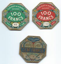 3 jetons Club PrivΓ© du Kursaal Ostende. 100 francs