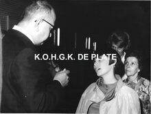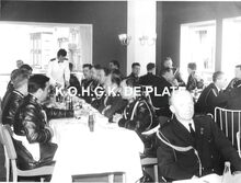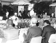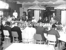 Formaat : 18 x 24 cm. - Banket aangeboden aan de president van Kameroen, met rechts van hem, John Lauwereins, waarnemend burgemeester en links, Jan Piers, minister-president Openbaar Ambt en Toerisme