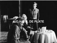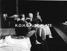 Formaat : 12 x 9 cm. - CafΓ©houdster mevrouw Rommelaere en een paar klanten