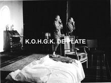 Formaat : 18 x 24 cm. - Van links naar rechts ; Emilien Michiels, directeur van de kursaal, de president van Kameroen, Jan Piers, minister-staatssecretaris Openbaar Ambt en Toerisme en John Lauwereins, waarnemend burgemeester