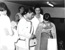 Formaat : 18 x 24 cm. - Mireille Mathieu in gesprek met Roger De RamΓ©e, directeur van de kursaal