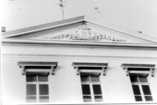 Formaat : 12 x 16,5 cm. - De oude gevel van het klooster en de school voor de verbouwing in 1953