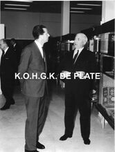 Formaat : 18 x 24 cm. - De koning in gesprek met Roger De RamΓ©e, directeur van de kursaal. We zien nog een glimp van Jan Piers, toen minister-staatssecretaris van openbaar ambt en toerisme