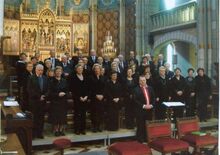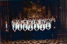 Formaat : 18 x 24 cm. - Links, conservator Frank Edebau. Tussen de koning en de koningin, schepen Raymond Miroir en waarnemend burgemeester John Lauwereins