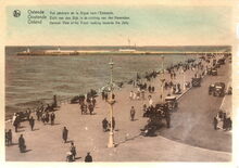 Nels. - OSTENDE Vue gΓ©nΓ©rale de la Digue vers l'Estacade - Oostende Zicht van den Dijk in de richting van den Havendam - OSTEND General View of the Front looking towards the Jetty. - Bijgekleurde kaart