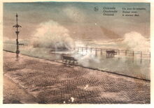 Nels. - OSTENDE Un jour de tempt - OOSTENDE Zwaar weer - OSTEND A stormy day. - Bijgekleurde kaart