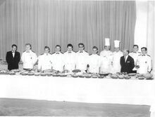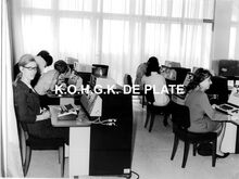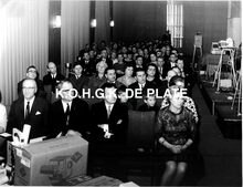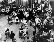 Strandrecreatie en pootjebaden op het strand van Mariakerke. Links, de Residentie Royal Palace en op de hoek met de 17 Oktoberstraat, het gebouw van het Institut des Dames du SacrΓ©-Coeur, nadien Katholieke IndustriΓ«le Hogeschool