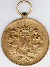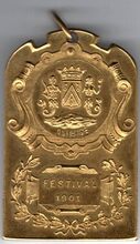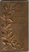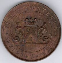 Op de keerzijde : links een lauriertak, boven horizontaal FΓTES / DβESCRIME / OSTENDE _._