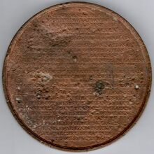 De gedenkpenning is rond van met gladde geprofileerde rand en is als volgt ingegraveerd