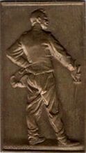De gedenkpenning heeft een rechthoekige vorm met gladde geprofileerde rand, en is als volgt ingegraveerd