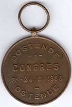 Op de keerzijde : rondom boven OOSTENDE, rondom onder OSTENDE, horizontaal ββ’β / CONGRES / 23 . 24/26/1956 / β