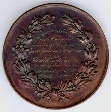 De gedenkpenning is rond met gladde geprofileerde rand, en is als volgt ingegraveerd