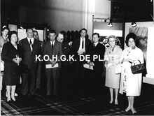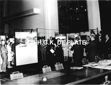 Formaat : 18 x 24 cm. - De vernissage. Met een inleiding van Jan Piers, minister-staatssecretaris voor Openbaar Ambt en Toerisme. Tentoonstelling van 06-16/08/1966. We herkennen rechts, John Hermans (journalist en gemeenteraadslid) en links naast de twee dames, Willy Bosschem.