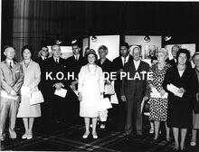 Formaat : 18 x 24 cm. - Persgala onder de patronage van de beroepsunie van de Belgische Pers. De liberale familie was talrijk aanwezig. Vooraan rechts, Frans Grootjans, Herman Vanderpoorten, minister van Binnenlandse Zaken, mevrouw Jan Piers en Roger De Kinder. Links, Willy Declercq, vice-premier