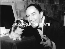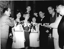 Formaat : 18 x 24 cm. - Persgala onder de patronage van de beroepsunie van de Belgische Pers. Uitreiking van de "Gouden, Zilveren en Bronzen Sloepen" geschonken door het Casino-Kursaal aan de meest verdienstelijke programma's van de Belgische Radio en Televisie. Derde van rechts, Roger De RamΓ©e, directeur van de Kursaal en naast hem Jef Cassiers (?)