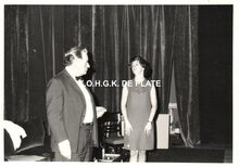 Formaat : 8,5 X 12 cm. - Conservatoriumtoneel als laureaat met éénakter "De 50ste voorstelling" te Mechelen in 1969. We zien hier Viviane Bruneel en Octaaf Defoor