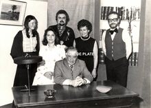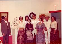 Formaat : 9 x 12 cm. - De toneelspelers van het Conservatoriumtoneel in het toneelstuk "FiΓ«sta" van Marc Fontenel en Oscar Ferket