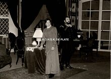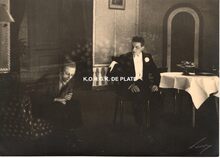 Formaat : 13 x 18 cm. - Toneelstuk van August Strindberg. Gisèle Simoens als "voedster" en Octaaf Defoor als "Ritmeester"