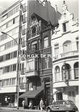 Formaat : 12 x 8,5 cm. - Rechts Hotel Plymouth op Van Iseghemlaan 111, links daarvan op 113 een kruidenierszaak. Hier staat nu een Residentie Plymouth met links beneden Verzekeringen Cuvelier, Brouns en Van Keirsebilck en rechts fotowinkel Firmin Vernieuwe