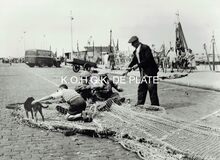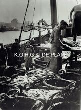 Vergroting. - Formaat : 30 x 40 cm. De visangels worden gevuld aan boord van het schip, klaar om te verkopen