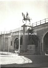 Formaat : 12 x 8 cm. - Het standbeeld gezien richting Koninklijke Villa