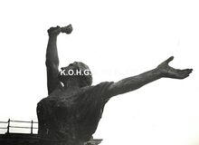 Formaat : 8 x 12 cm. - Dit beeld stond in het Koningspark en verhuisde naar de Koningin Astridlaan voor het Stedelijk Zwembad, waar het gestolen werd.