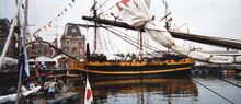 Formaat : 10 x 23 cm. - Het zeilschip "Grand Turk" in het eerste handelsdok voor het Zeestation