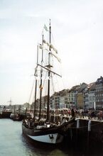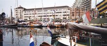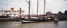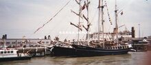 Formaat : 15 x 10 cm. - Het zeilschip "Oosterschelde" in het Montgomerydok. Rechts, de Visserskaai